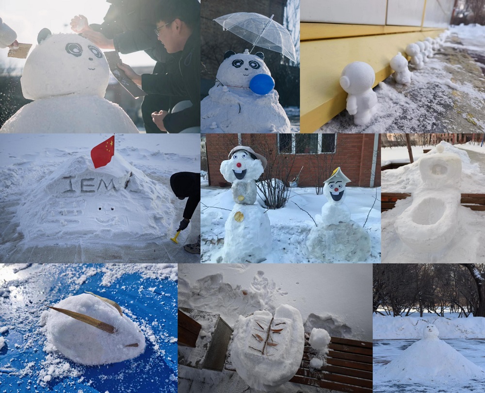 伴著冬日的暖陽,研究生們三五成群聚集在我所各個角落,他們手持鏟子和搜集來的各種工具熱情洋溢地準備著,有人運雪、有人滾雪球、有人塑形、還有人在精心地裝扮雪人,同學們忙得不亦樂乎,盡情享受著堆雪人比賽帶來的激情與快樂,仿佛把自己真摯的情感也融入了雪花之中。同學們充分發(fā)揮想象力和創(chuàng)造力,創(chuàng)作出各種各樣的雪人作品。這些雪人有的造型別致、有的栩栩如生、有的趣味十足,讓人忍俊不禁,充滿著冬季的歡樂與活力,成為工作區(qū)中一道道靚麗的風景。經(jīng)全所職工共同參與,最終評選出優(yōu)秀作品3個。