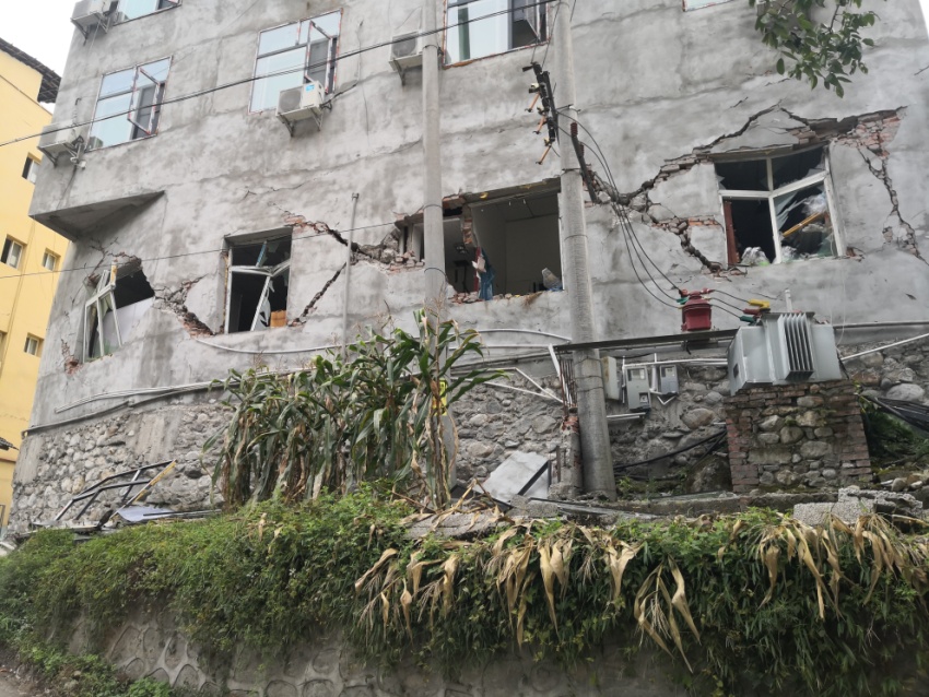 康定線科考組在磨西鎮(zhèn)考察了房屋的震害,重點關(guān)注了張貼紅色破壞標(biāo)識的房屋。房屋主要類型以底層框架磚混結(jié)構(gòu)為主,包含少量的框架結(jié)構(gòu)、磚木結(jié)構(gòu)等,其中磚混結(jié)構(gòu)房屋破壞多集中在1層,上部樓層破壞較輕微,且部分房屋的破壞程度比較嚴(yán)重,房屋完全無法使用。