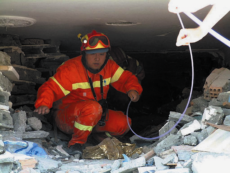 孫柏濤在汶川地震救援現(xiàn)場(chǎng)