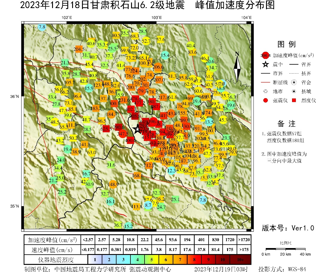 發布時間: 2023-12-19 點擊數量:7398中國地震臺網正式測定:12月18日23時59分,在甘肅臨夏州積石山縣(北緯35.7度,東經102.79度)發生6.2級地震,震源深度10公里。