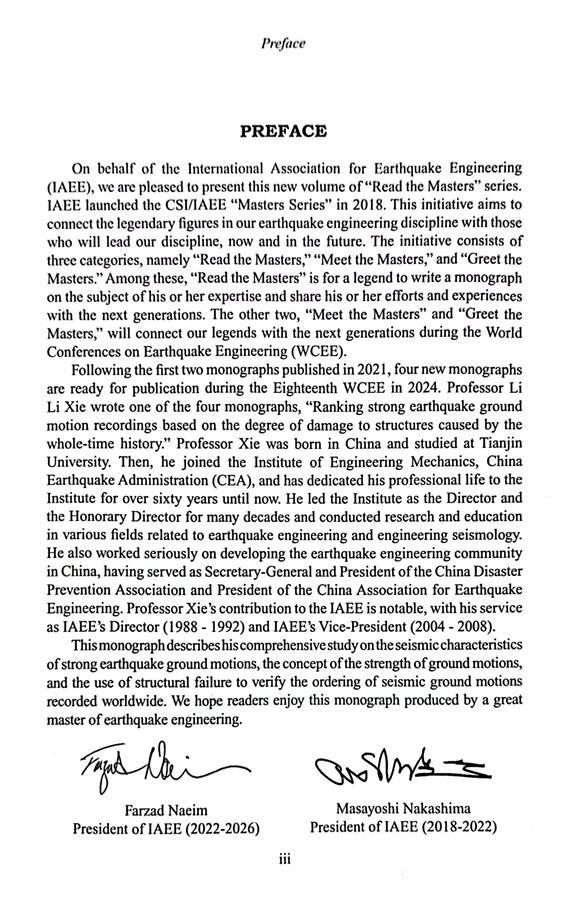 會上,謝禮立院士以《強地震動按破壞強度的排序研究(Ranking strong earthquake ground motion recordings based on the degree of damage to structures caused by the whole time history)》為題做大會報告。IAEE前主席中島正愛教授親自主持。IAEE專門出資為謝禮立的此項研究成果以“閱讀大師”專著正式出版,贈送給來自全球100多個國家和地區的四千多名與會學者。這本專著凝聚了謝禮立院士及其團隊自本世紀初以來歷經20余年的研究獲得的重要研究成果。